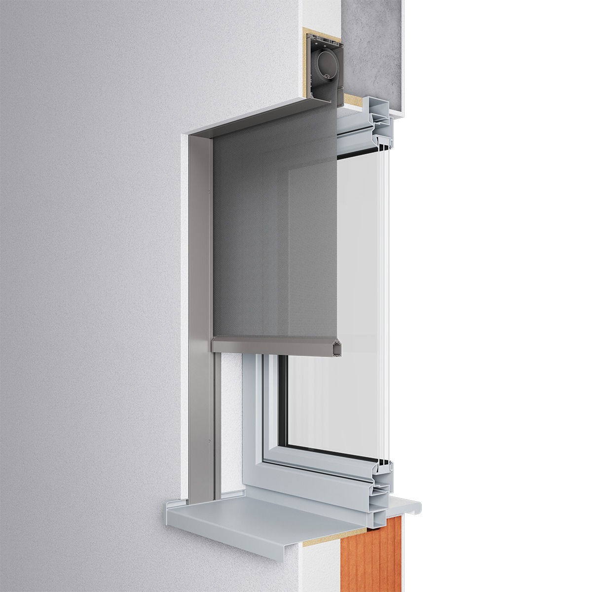 Screenová roleta v podomítkovém boxu je ideální při novostavbách a rekonstrukcích. Speciální látka se svinuje do boxu, který je plně ukryt pod vrchní omítkou a nijak nenarušuje fasádu domu.
